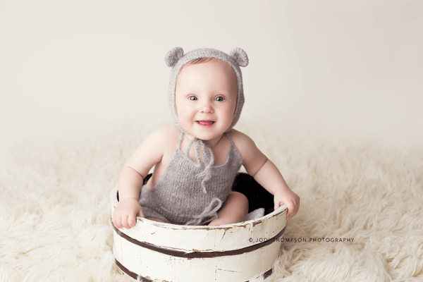 Knitted ties bear bonnet and matching long sleeve romper NB photo prop